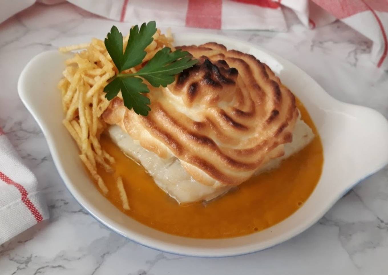 Bacalao sobre crema de zanahoria