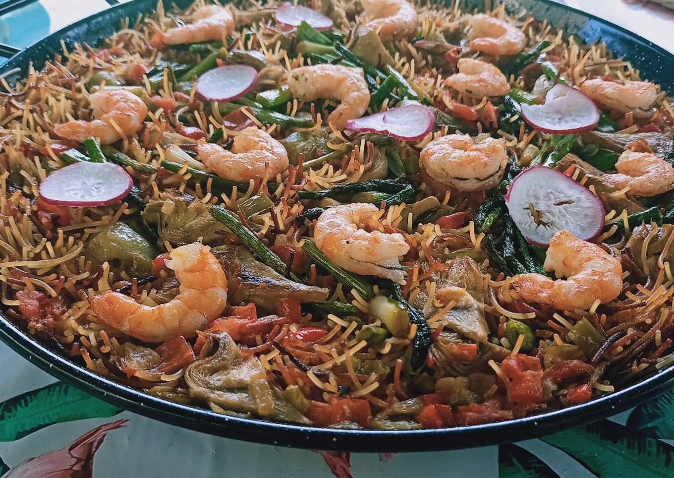 Hello everybody, I hope you are having an amazing day today. Today, we're going to make a special dish, Fideuá de verduras y langostinos con allioli de rábanos. It is one of my favorites. This time, I'm gonna make it a bit unique. This will be really delicious.