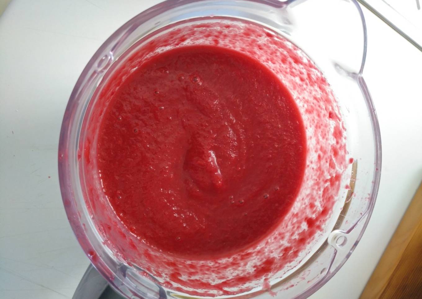 - Lavamos y pelamos la remolacha cocida, y los tomates eliminando el centro. Los los introducimos en el vaso batidor.