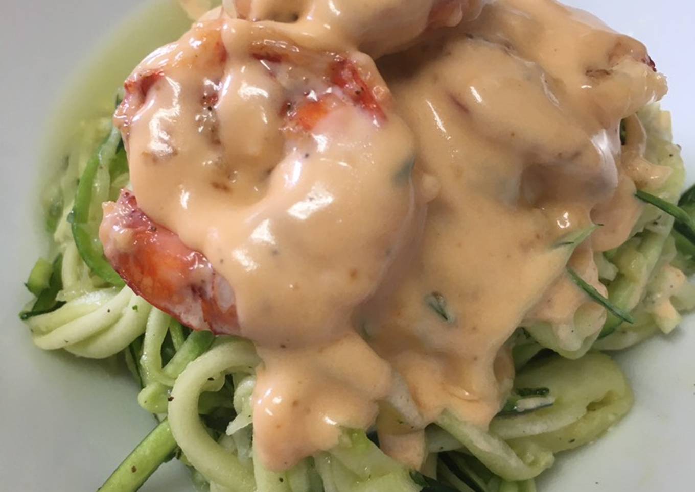 Espaguetis de calabacín con salsa de nata y gambones (keto)