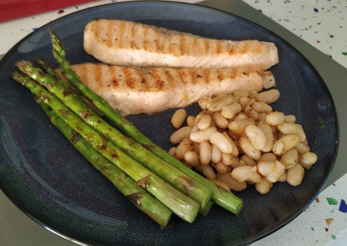 Hello everybody, I hope you're having an incredible day today. Today, I will show you a way to make a special dish, Salmón a la plancha con trigueros y guarnición de alubia blanca. It is one of my favorites. This time, I will make it a little bit tasty. This is gonna smell and look delicious.